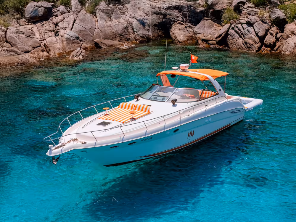 Segeln Sie mit Stil auf der Vodka, einer 46 Fuß langen Searay Sundancer Motoryacht. Mit ihrem eleganten Design und klimatisierten Innenraum bietet sie einen intimen und luxuriösen Rückzugsort für bis